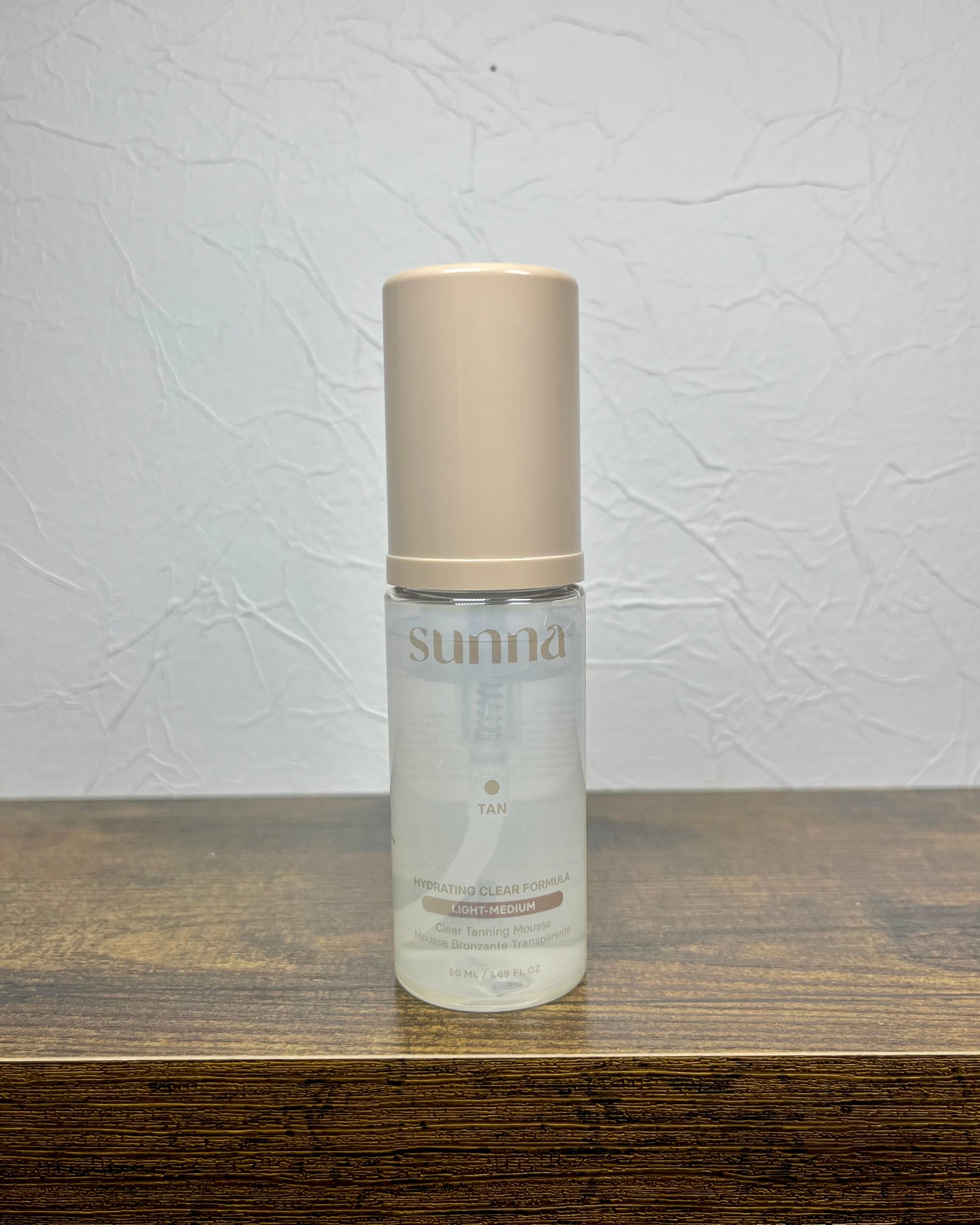 DESCRIPTION Achieve a flawless, natural-looking tan with our Clear Tanning Mousse. Our unique formula glides on smoothly and dries quickly, leaving your skin hydrated and glowing. Enjoy a streak-free tan with no transfer to clothes or sheets DIRECTIONS Prepare your skin by ensuring it is clean, dry, and exfoliated. Using a self-tanning mitt, use 1-2 pumps at a time and apply in circular motions, working in sections. The product will apply clear. Save ankles, hands, and feet for last. At the end mix a small pump of lotion with the residue on your mitt and apply to these areas. Refer to our rinse times to achieve your desired tan depth. Full results will develop within 24 hours.